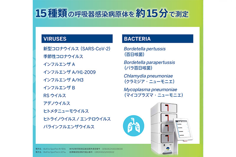従来の検査はインフルエンザのみですが、この検査は15種類を同時検出。マイコプラズマや百日咳など、従来は診断が難しかった感染症も分かります。